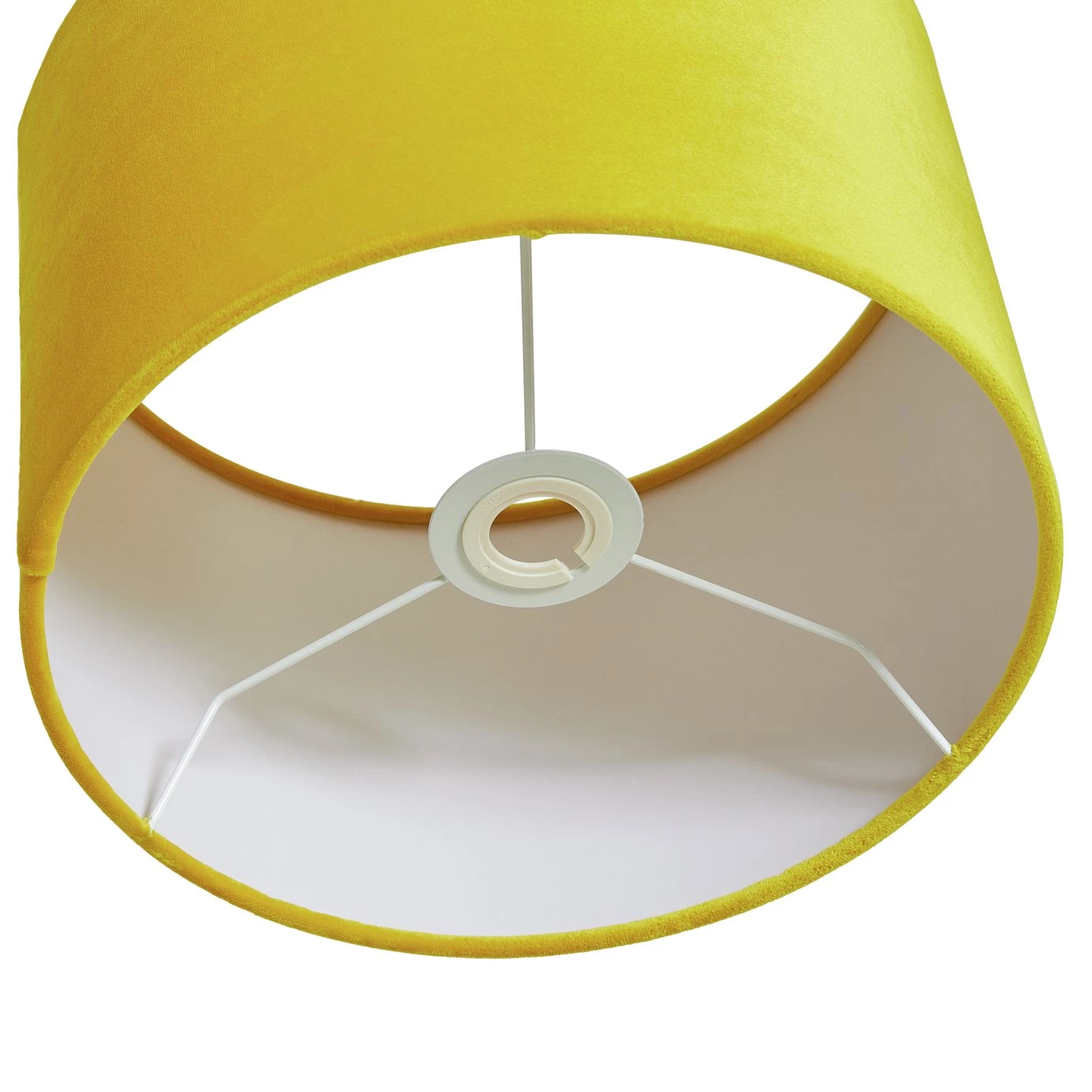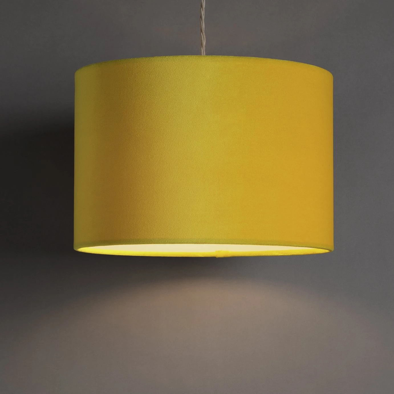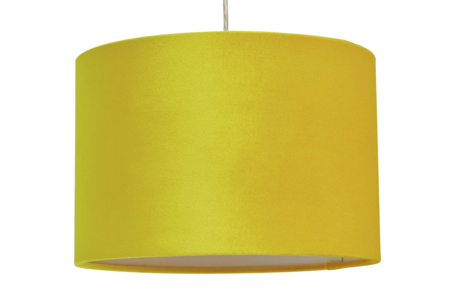 Lower the lights! This luxurious velvet shade in an elegant yellow creates just the right mood for cosy evenings in. Sumptuous and indulgent, perfect if you're seeking a little Luxe sophistication. Our classic drum shape works three ways. Fit it as a ceiling shade in the lounge, to a lamp base by your bed or as a floor lamp to throw light on darker corners. Effortlessly diffuses the light to create a subtle, ambient glow. Heavenly!
