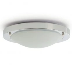 Bath light, bath bright. The Bowdon LED flush bathroom ceiling light has everything you need to brighten up your bathroom. Practical yet stylish, it has a domed frosted glass shade in a brushed chrome surround, and makes use of super-energy efficient and bright LED bulbs.
