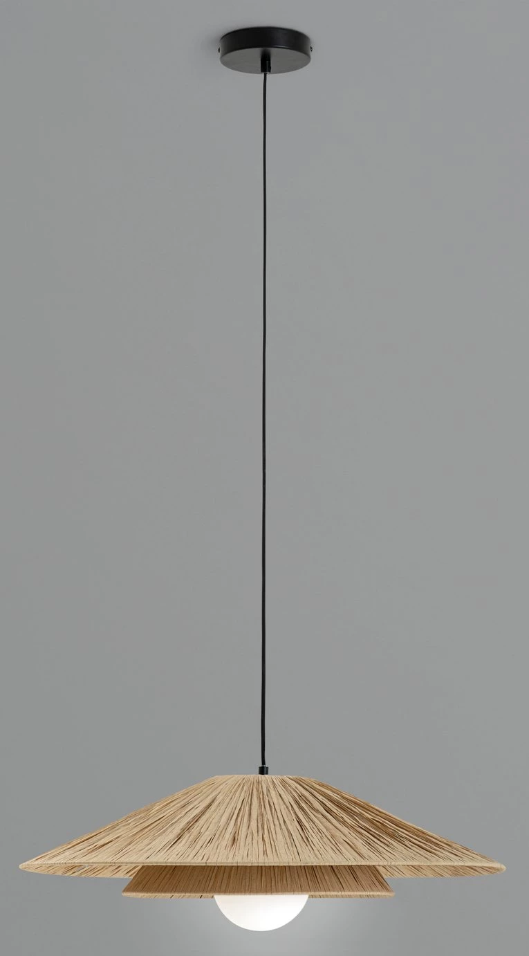 A shade above. Our two-tier Guii ceiling light lends an organic ambience to your lounge or kitchen. Naturally lightweight raffia meets a strong, metal frame to create this tastefully textured design. This pretty pendant is ideal for accent lighting and low ceilings. Can be used with a dimmer switch for your choice of bright or mood lighting. Simply radiant.