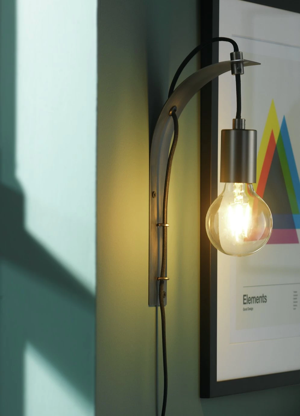 Functional and fabulous. We love the pared back, minimalist design of this striking but simple wall light. Sit perfectly with industrial decor wherever there is a plug. Ideal for throwing light into dark corners or hallways or adding drama to a room. The exposed LED light bulb gives off a cool vibe and hangs from a stylish curved metal holder. All wires exposed of course, this is industrial chic!