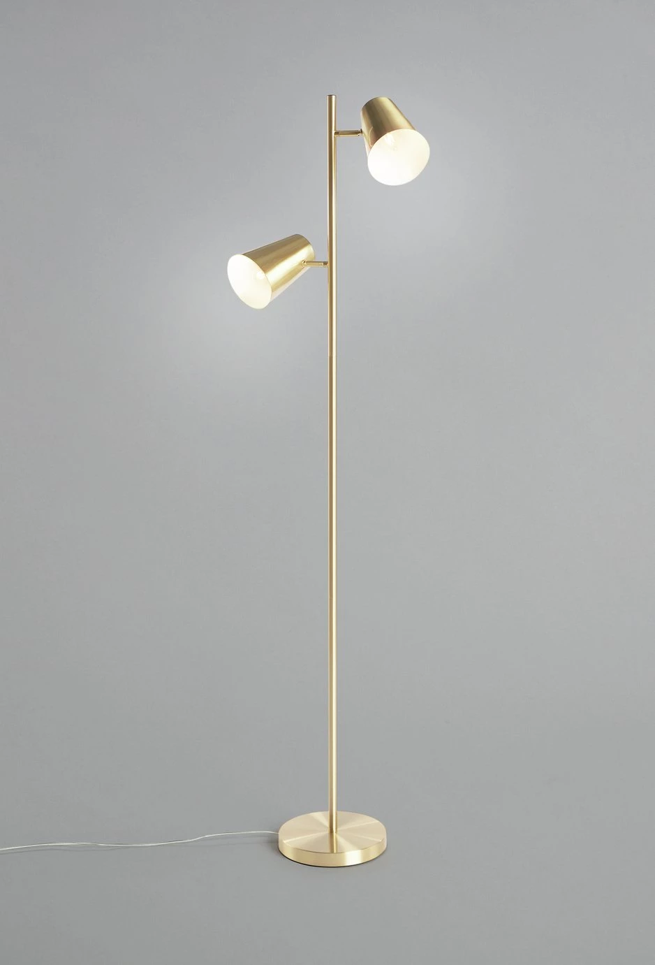 Tall, slender and spot on trend. Our brass floor lamp has got it all going on. It's compact base and slim stem makes for a versatile piece. The 2 directional lamps are ideal for lighting up a cosy reading corner or highlighting a favourite piece of art. Style with dark wood and metallic accents to bring a little mid-century glamour to your space. Illumination to love.