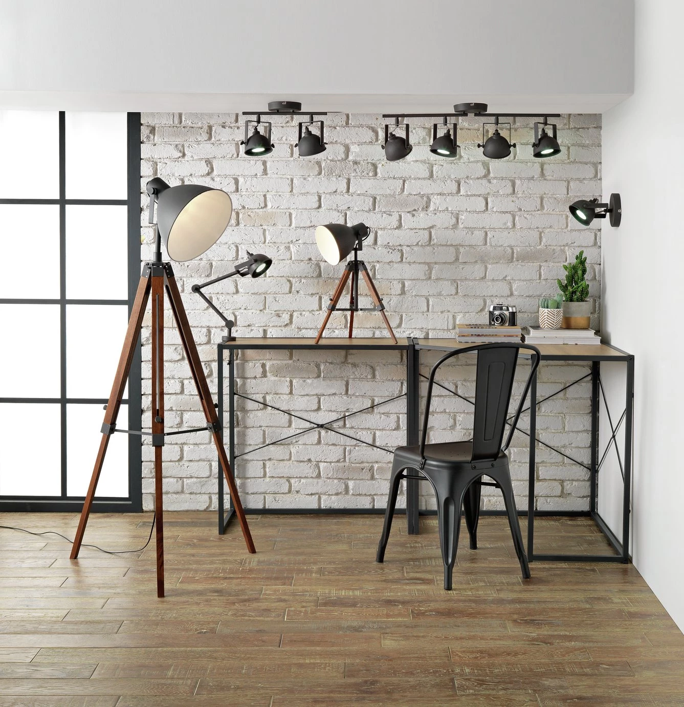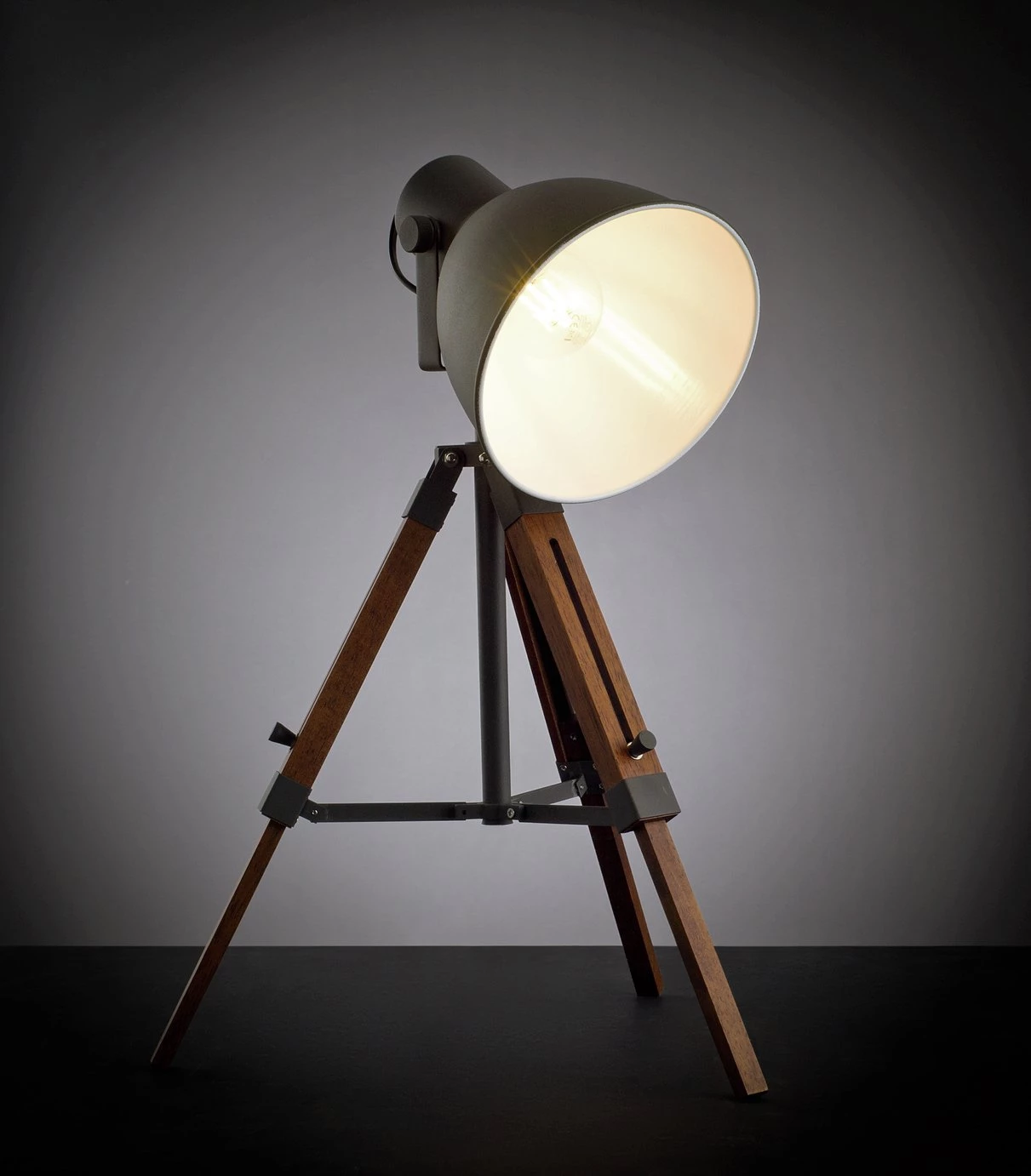 Inject an urban edge into your home with this Loft Living tripod table lamp. Inspired by industrial design, it has a matte grey shade with a bright white interior for a brilliant task light in any space. The legs are adjustable so you can choose the height you want. Ideal as a task light over a desk, or brighten up a gloomy corner to create atmosphere. Take a look at the rest of the Loft Living lighting collection to complete the look.