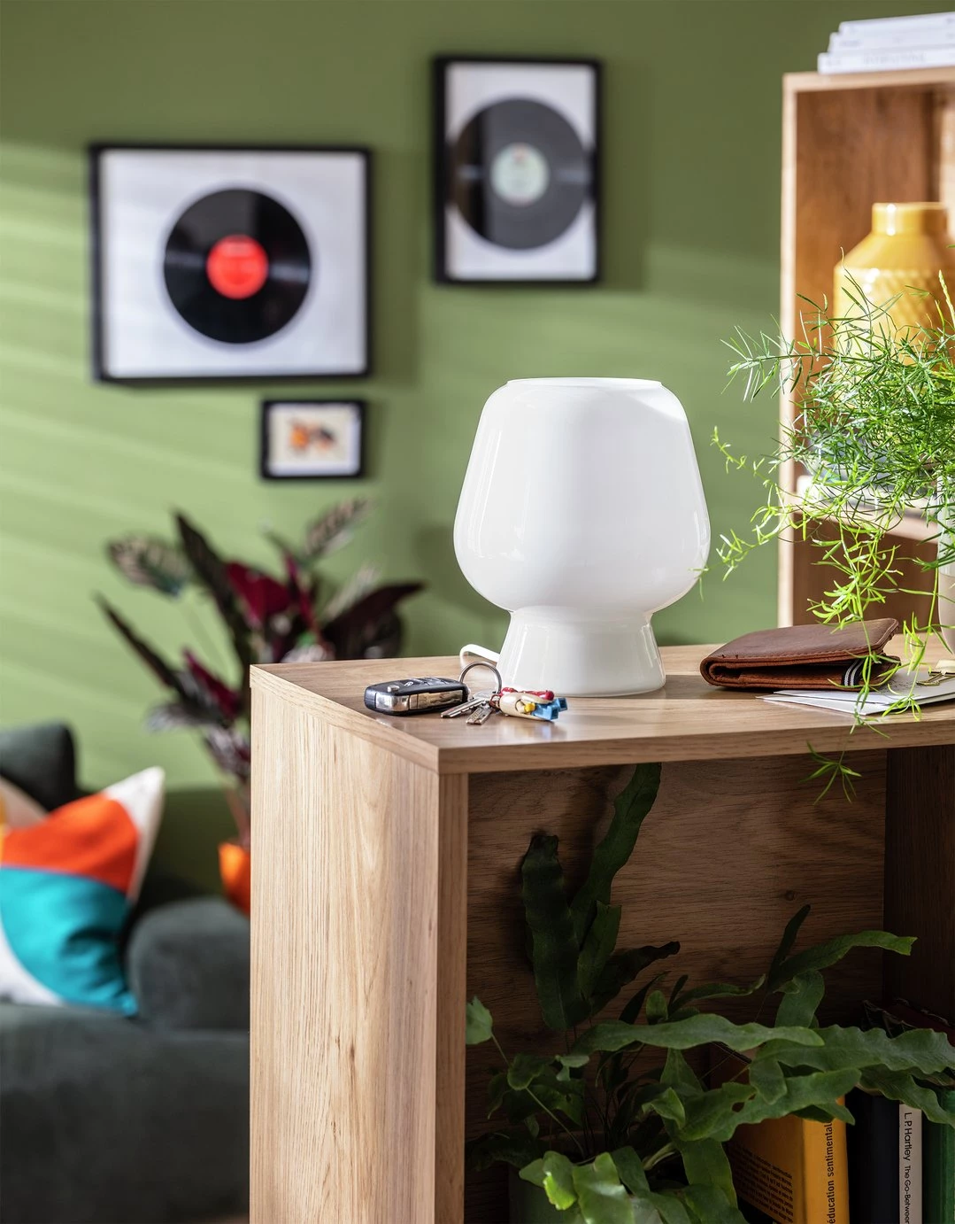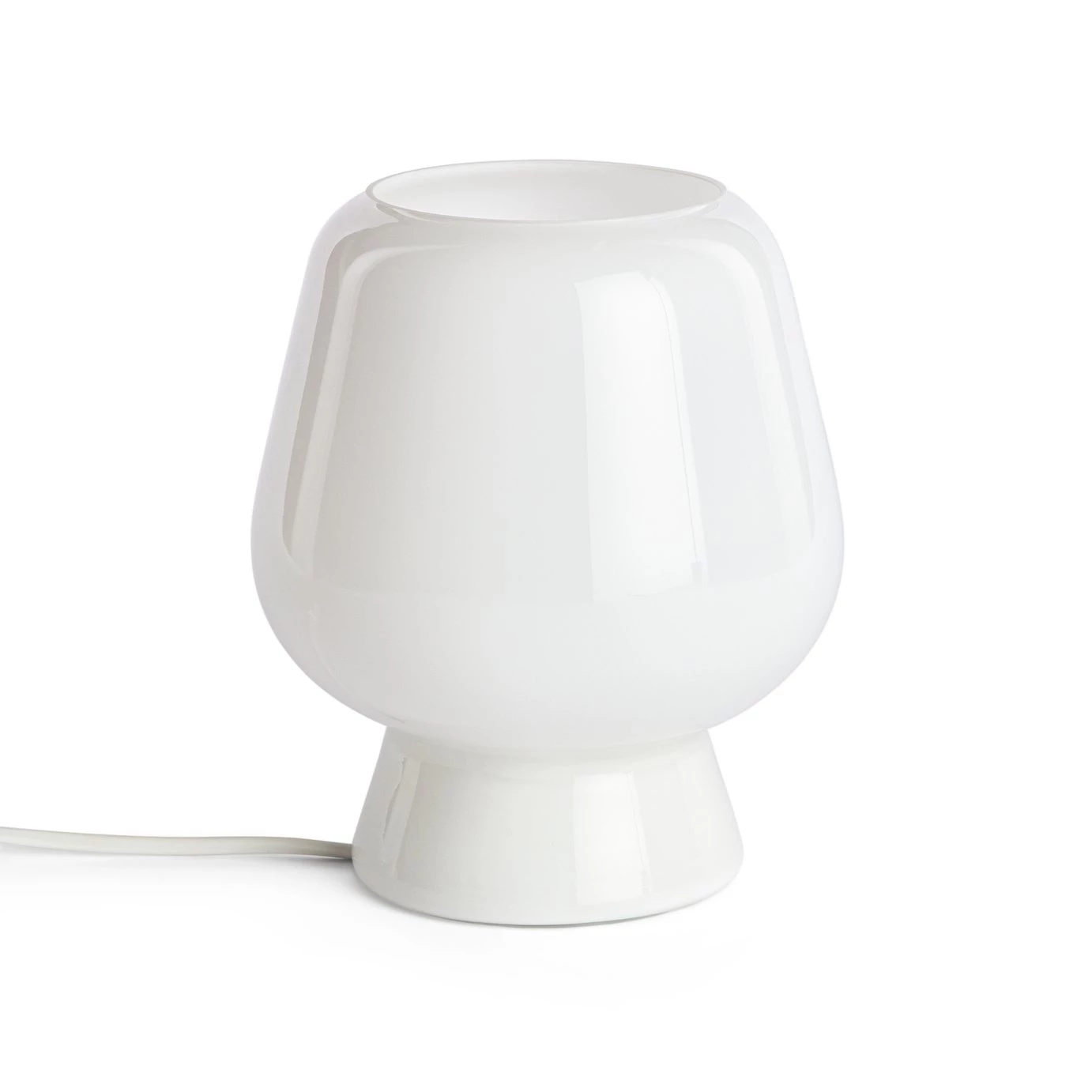 Light up the room with Lucetta. This dainty little table lamp offers up plenty of retro flare. Made from white glass with a curvaceous silhouette, it's the perfect addition to your reading book or bedside. Simple yet stylish, it's 19.6cm tall with a width of 17cm and requires 1 small Edison screw bulb. With an easy-to-use mainline switch, you can sit back with your favourite page-turner and bask in Lucetta's soft warm glow. This versatile lamp is always a bright idea.
