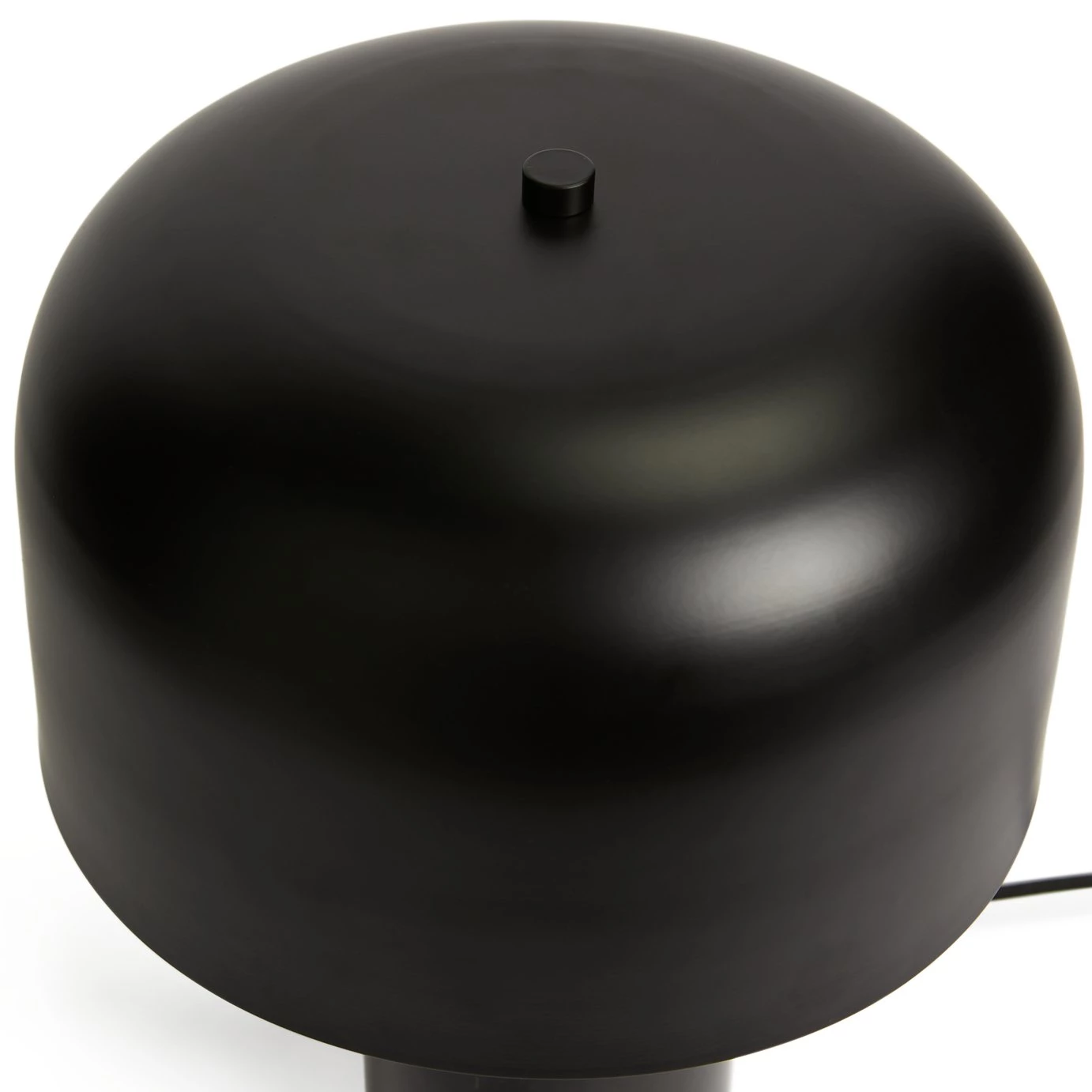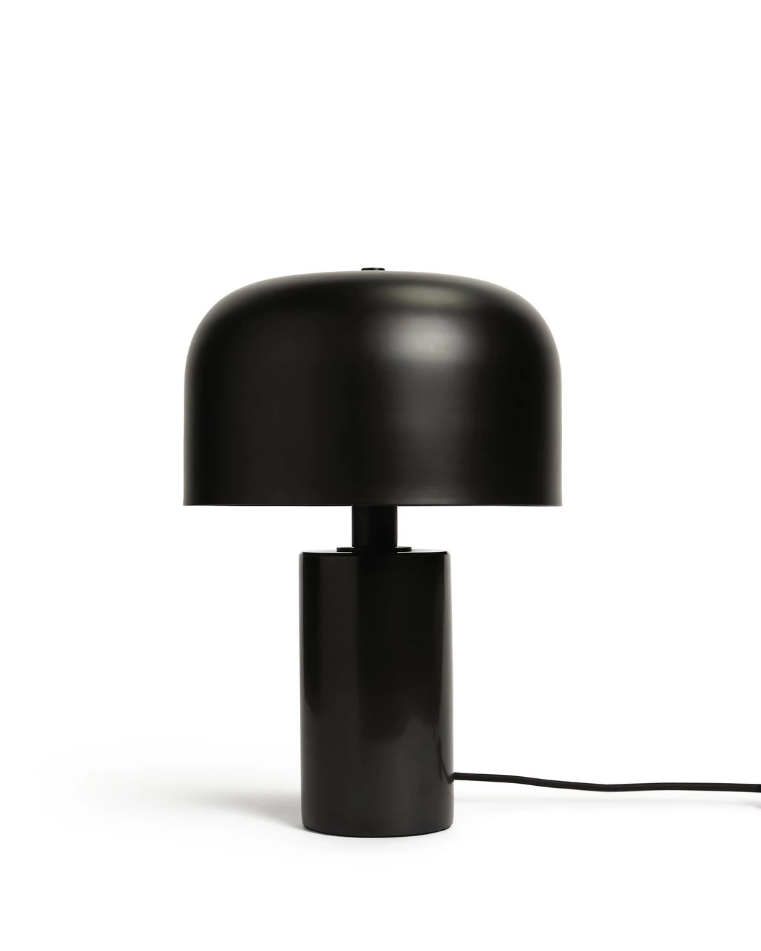 Set the mood to modern. Our jet black lamp brings a touch of stark dark glamour to the table. Curvy and contemporary, its glossy marbelised base contrasts beautifully with a matte metal domed shade. Emitting a subdued pool of light, it's ideal for creating a softly atmospheric space. One smooth sultry way to shine.