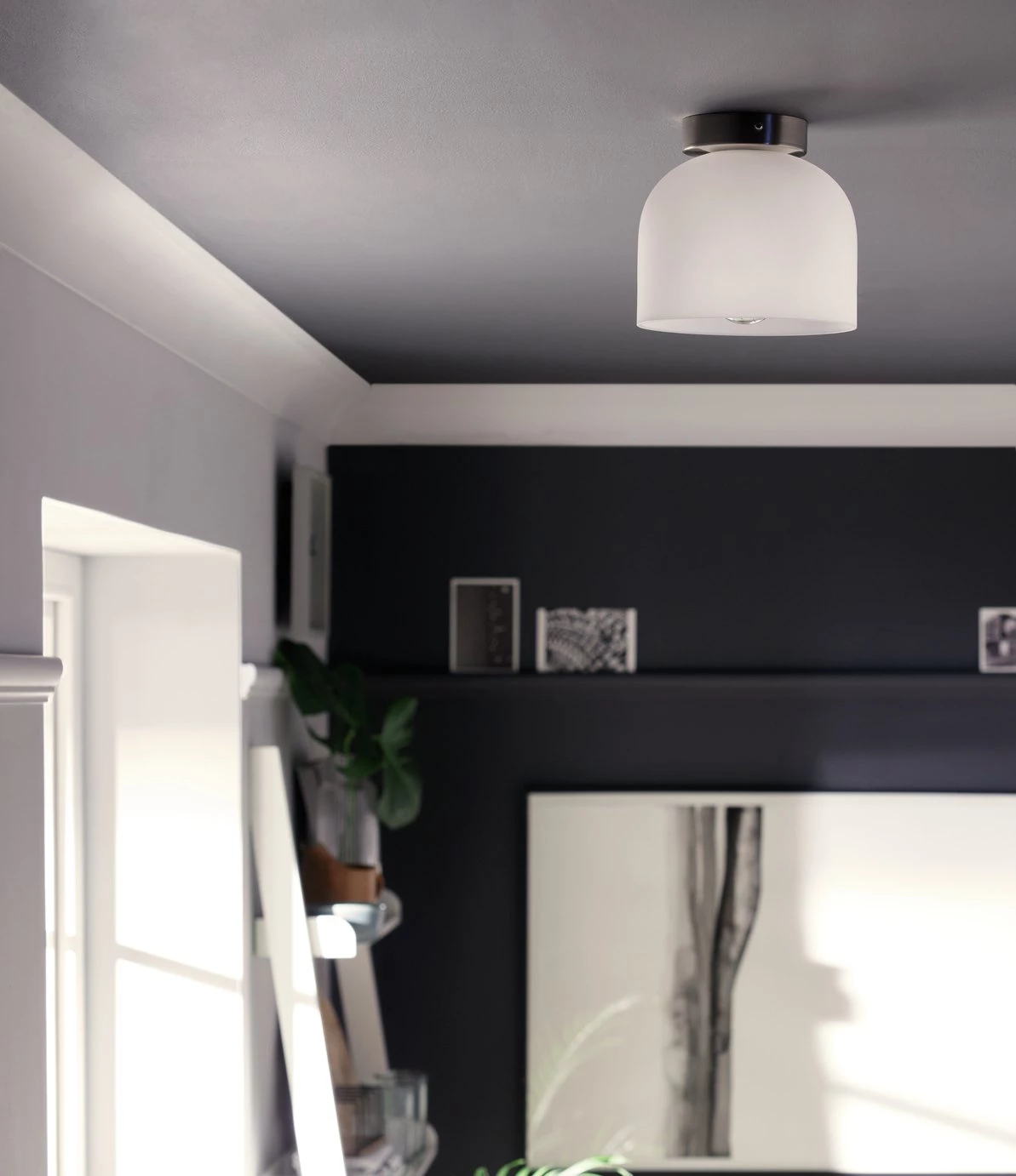 Let us bowl you over! This gently curved ceiling light brings a warm inviting glow to your hallway. Designed to diffuse light, the frosted glass shade adds a soft ambience to any living space. Combines effortless function and contemporary style. Nickel effect on the round base adds a polished finish to the fitting. Sits flush to the ceiling, so you can make the most of your floor space.