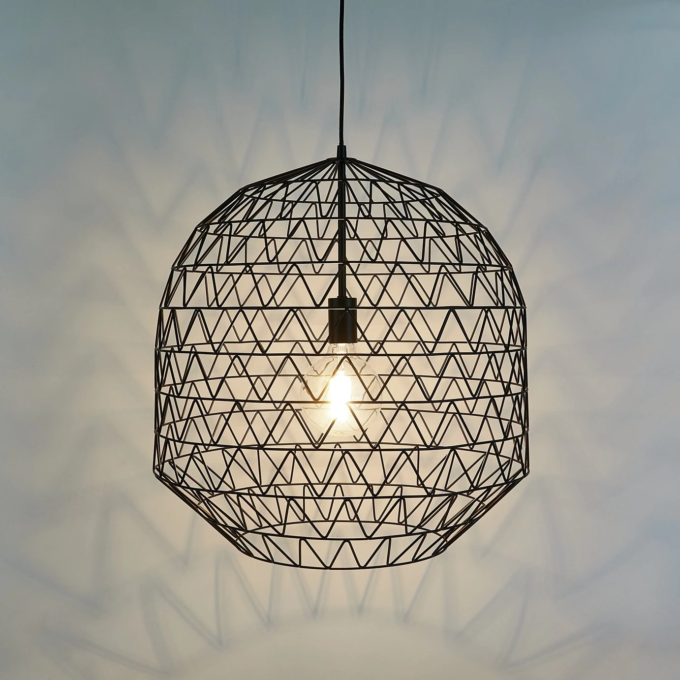 Modern industrial meets contemporary chic. We're excited by our Moor wire ceiling light. It ticks so many boxes. The geometric shape looks great switched on or off. The wire frame finished in black is timeless and fits in any room – study, kitchen, bedroom. The braided black wire flex gives an adjustable drop so you can hang it 'just so'. And when you switch it on, stunning shadows reflect through the wire onto your walls – you won't be able to wait for dusk!
