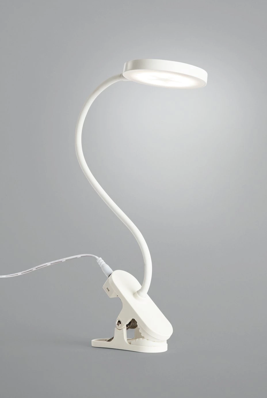 Wherever you want to knuckle down, our versatile Mopsa clip lamp lights the way. Attach to a shelf, desk, or whatever's lying around, the strong sturdy grip clip means it stays firmly in place. The cool white light is ideal for reading or working. And you can bend and wiggle the fully flexible spine until it shines just where you need it. Could it get any easier? Yes, it's touch sensor operated, just tap on and off. Smart.