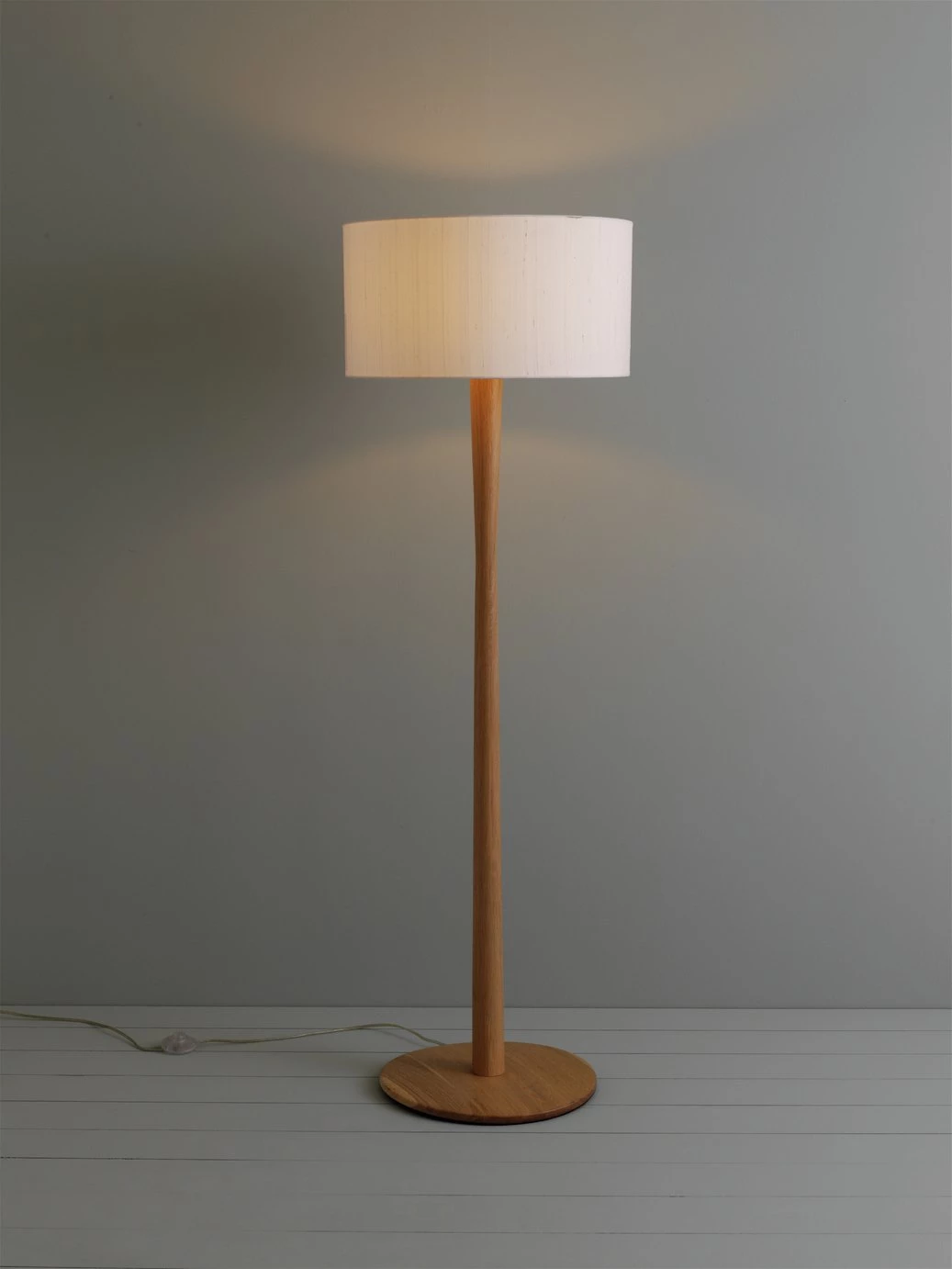 Illuminate your space with this contemporary pole floor lamp. Crafted from solid oak, this sleek frame is great for brightening up dark corners of your home. A welcome addition to any bedroom, hallway or living space, add an oversized shade in a vibrant pattern to give your decor a vintage feel.