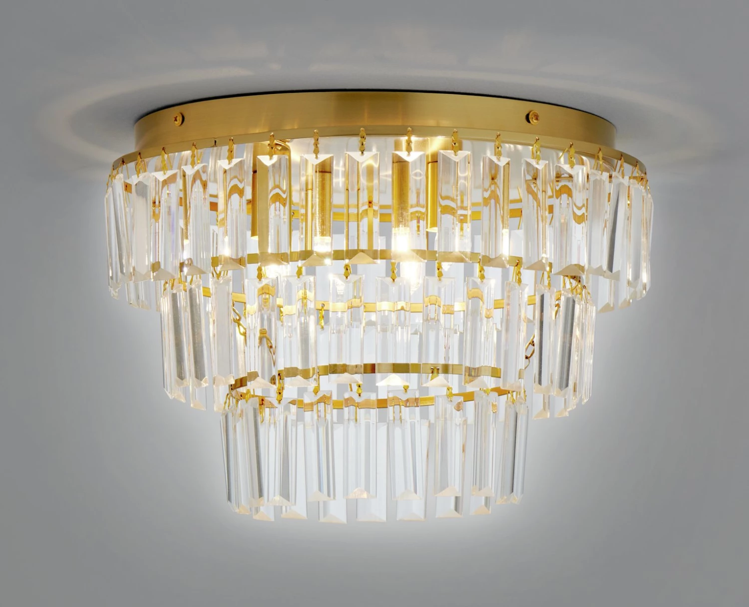 The ultimate showstopper. Presley creates a sense of drama and glamour. Crafted in brushed brass with 3 tiers of delicate clear hanging crystals, this elegant chandelier commands attention. Refracting light wherever it's placed, Presley's elegant glass structure adds pattern and texture to your home. Whether making an entrance in the hallway or taking centre stage in the living room, Presley becomes a focal point in any room. Easy to assemble, refresh your space in an instant with this striking chandelier.
