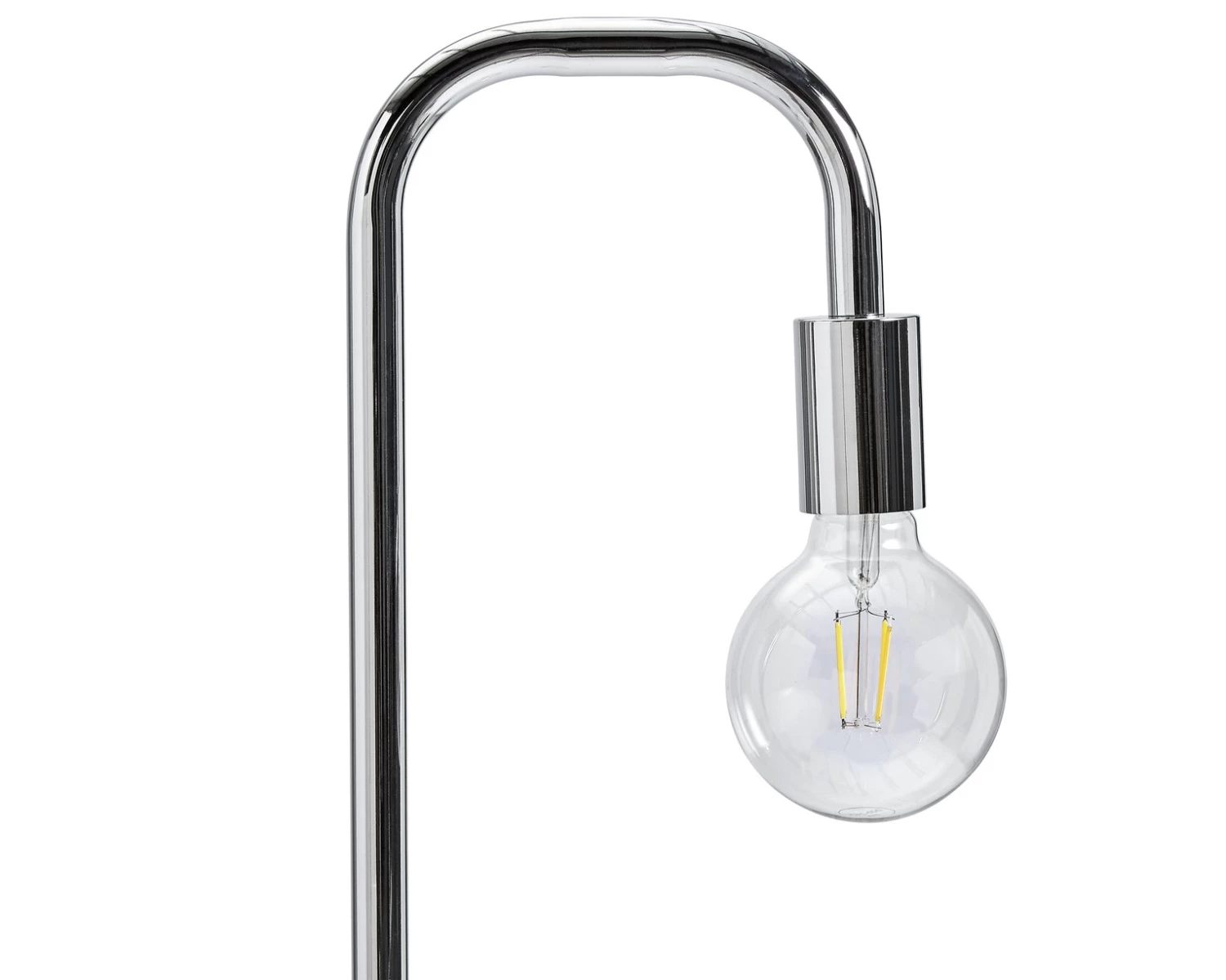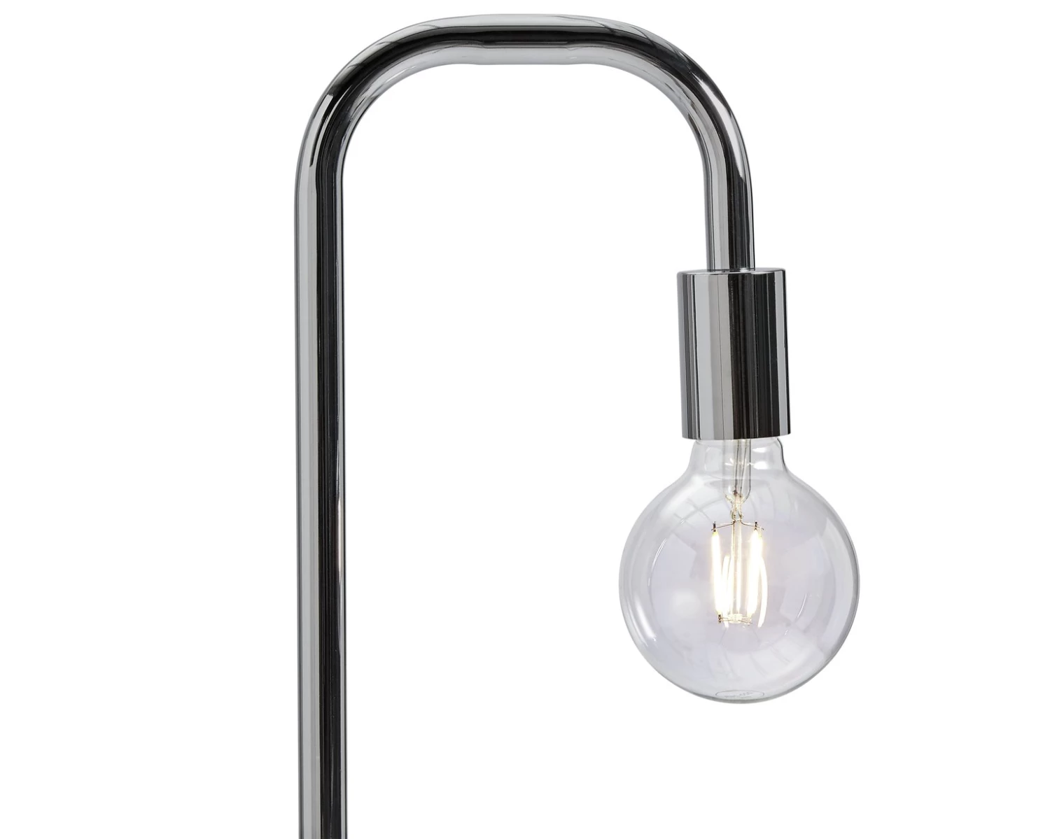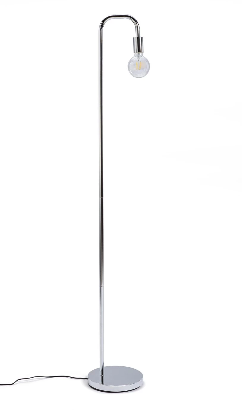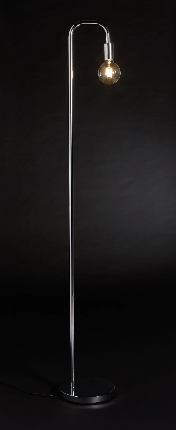 Shine a light on style. This minimal chrome floor lamp is a stand out stunner in any room. Light up a dark corner of your bedroom. Put it in your lounge next to your favourite armchair. Give your work room a spot of glamour. The tall slim chrome frame is elegantly unfussy. The bulb is not meant to be in the shade. It's a design piece all of its own. To turn it on or off, simply step on the discrete floor switch.