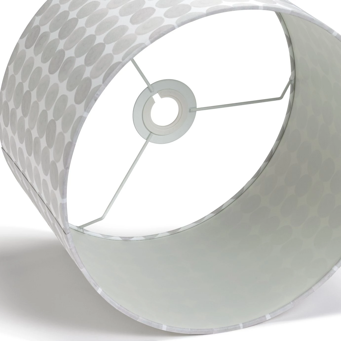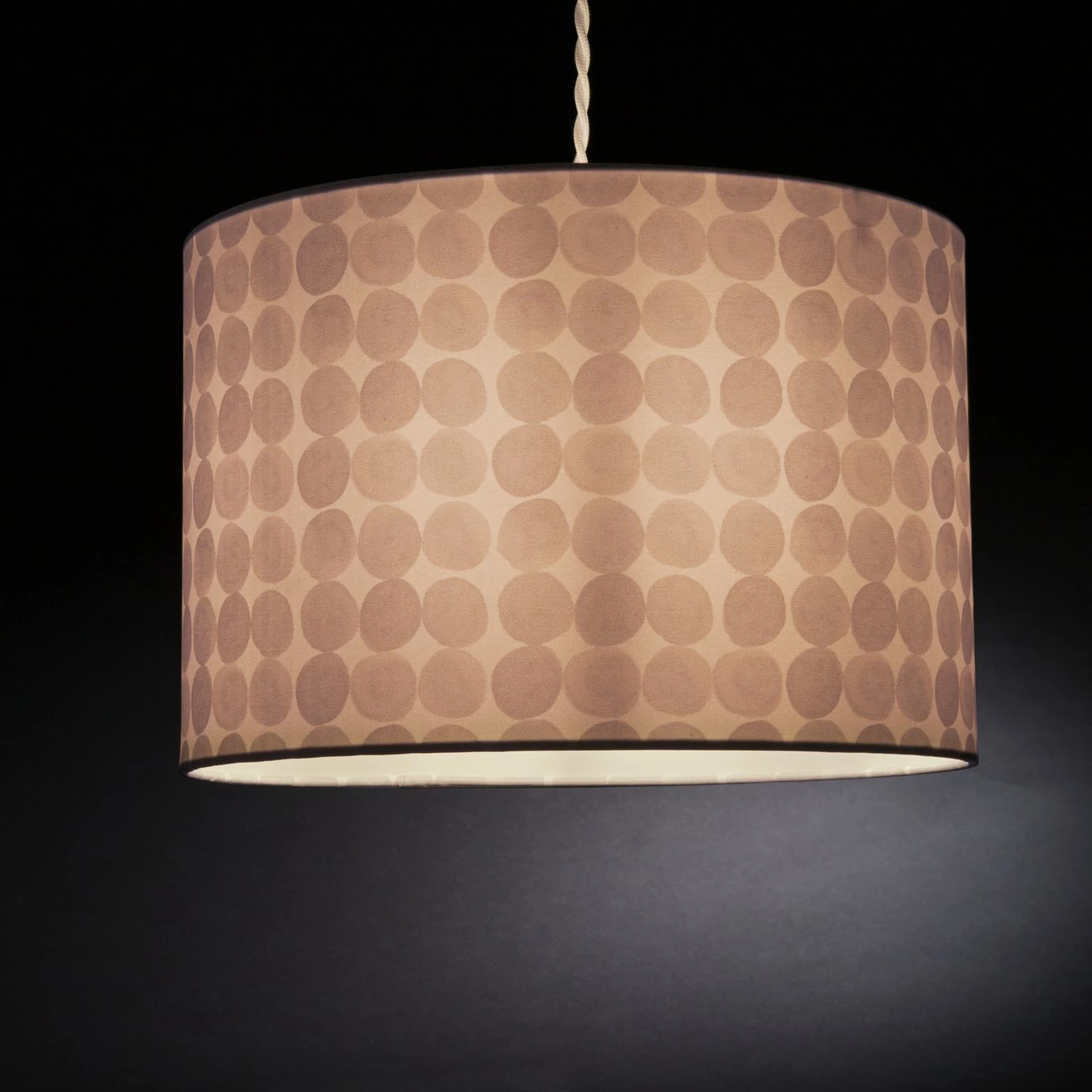 Fabric drum shade with Skandi Dots print, fixed gimbal, E27 ring with B22 adaptor.