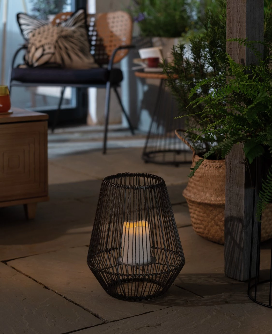 Decorative candle floor lamp; Solar power save electricity; Plastic rattan materials; Used in the garden or table;.