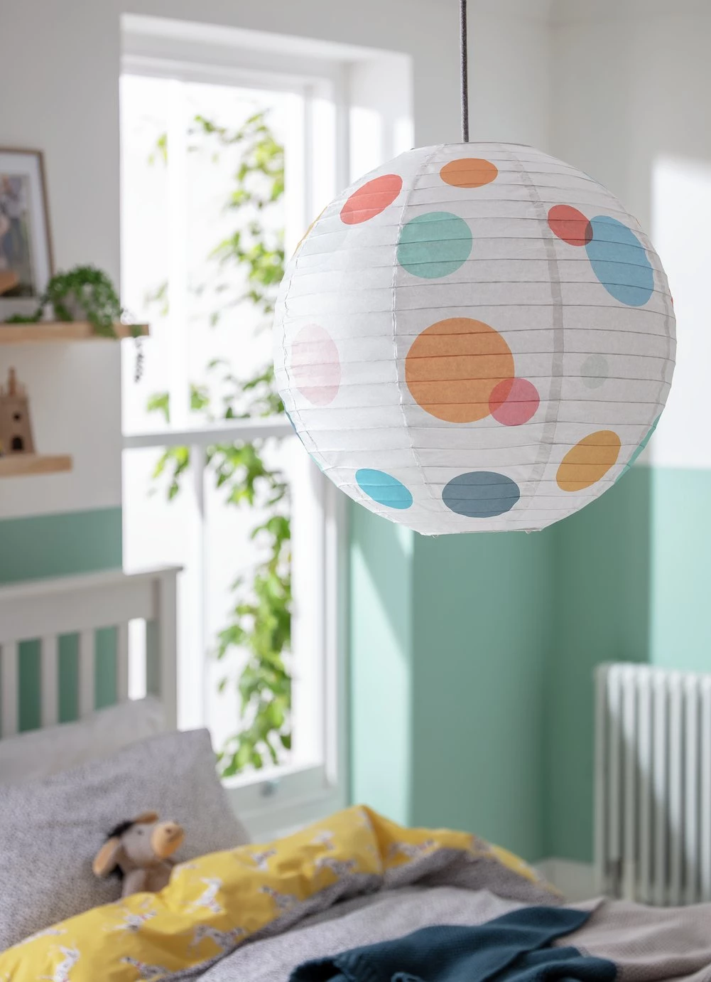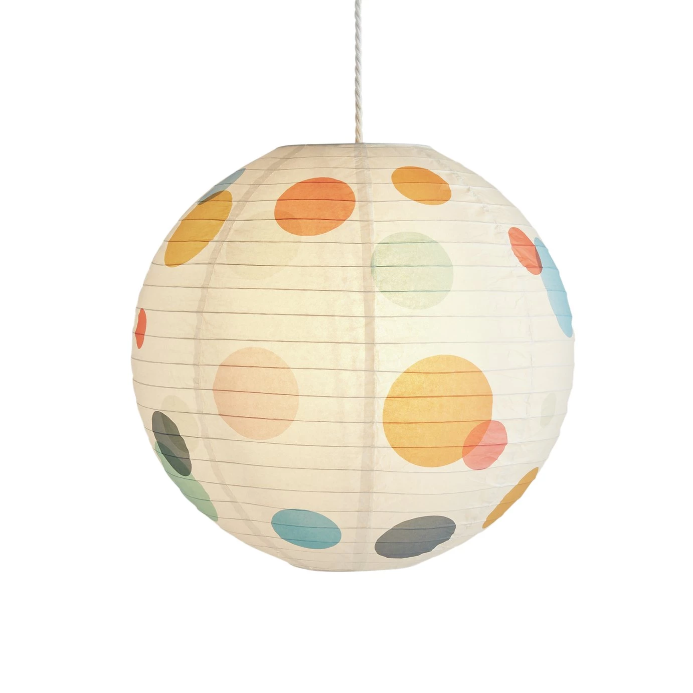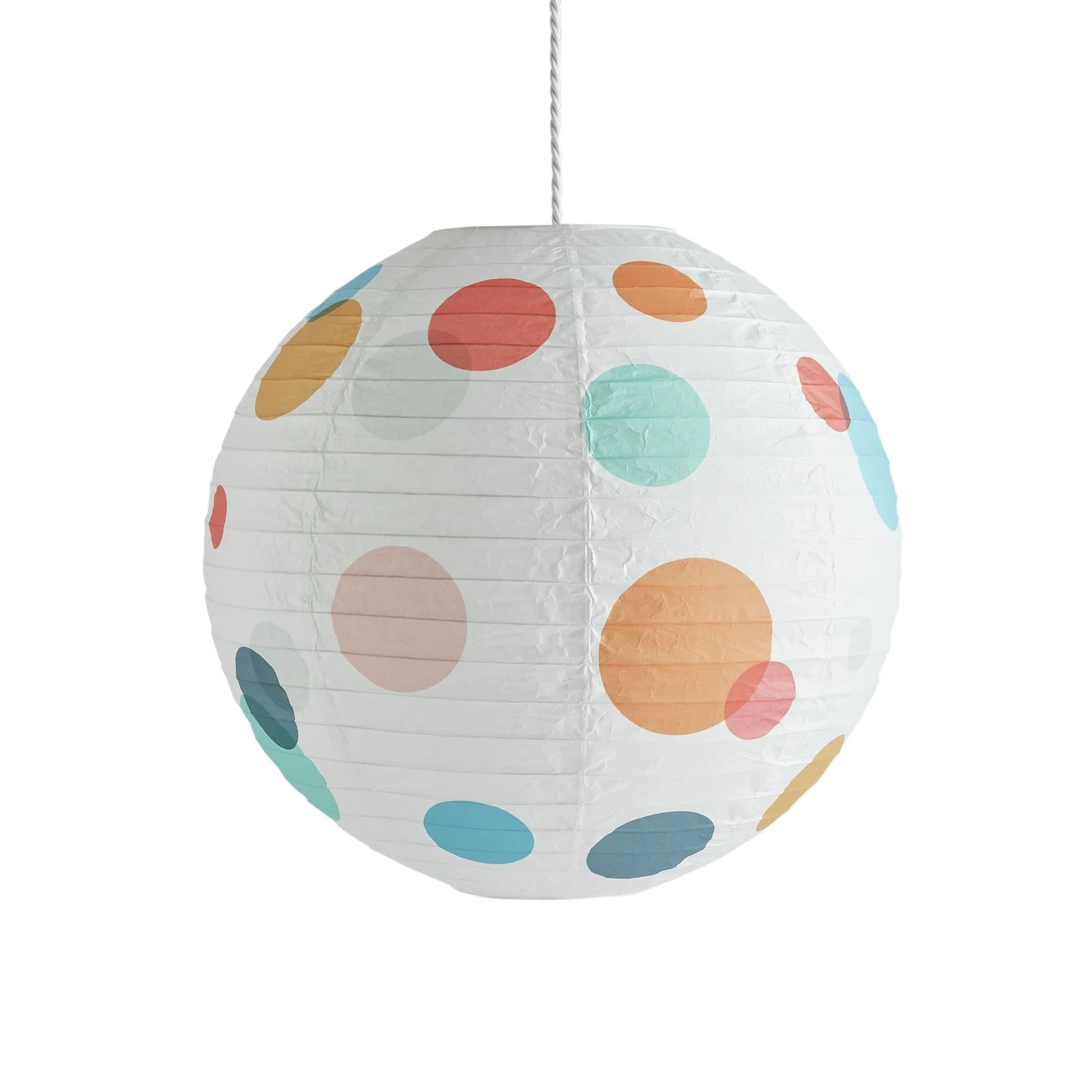 A spot-on shade. With it colourful circles, this large shade reminds us of an iconic Damien Hirst artwork. Made from paper it's a light, bright ball of loveliness. With its happy go lucky looks it'll cheer up a bedroom, lounge or dining room. Easy to fit it's an all-round winner.
