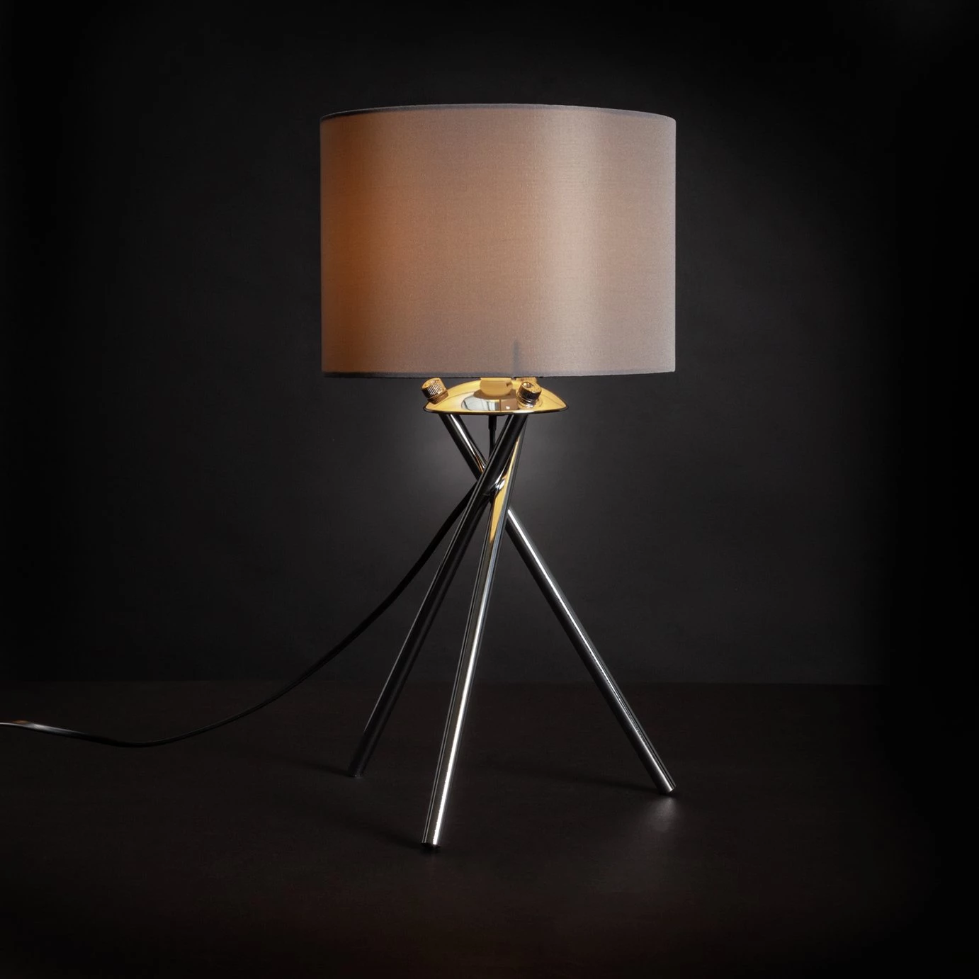 Take a shine to our tripod table lamp. Stunning. A modern classic crafted in chrome and topped with a grey coloured drum shade, super stylish. We love the minimalist design and timeless appeal. Switch on and enjoy the glow.