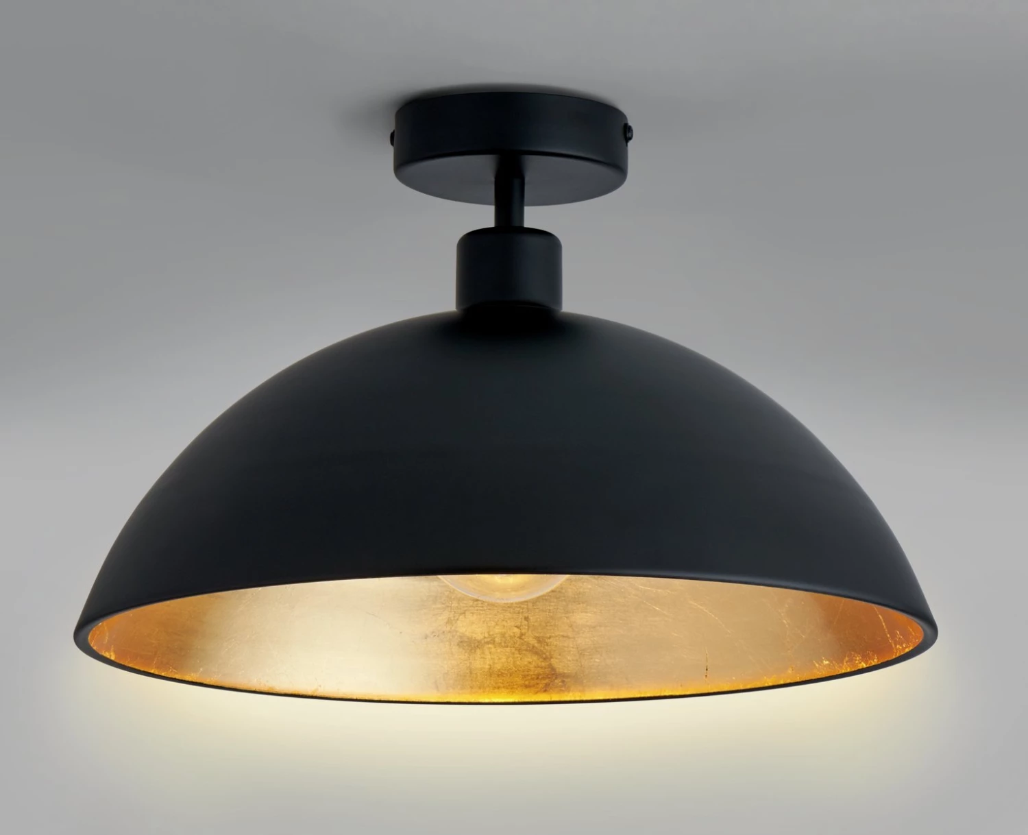 Cool and contemporary, with a touch of gilded glamour. Go for gold with the Yuno flush to ceiling light. Crafted in matt black with a stunning hand applied gold leaf interior. This flush light adds warmth to your space in an instant. A great addition to your living space, bedroom or hallway, Yuno has enduring appeal. With a diameter of 35.5cm, the eye-catching shade adds ambience without stealing focus. A simple but stylish design you'll never tire of, this light pairs well with any decor.