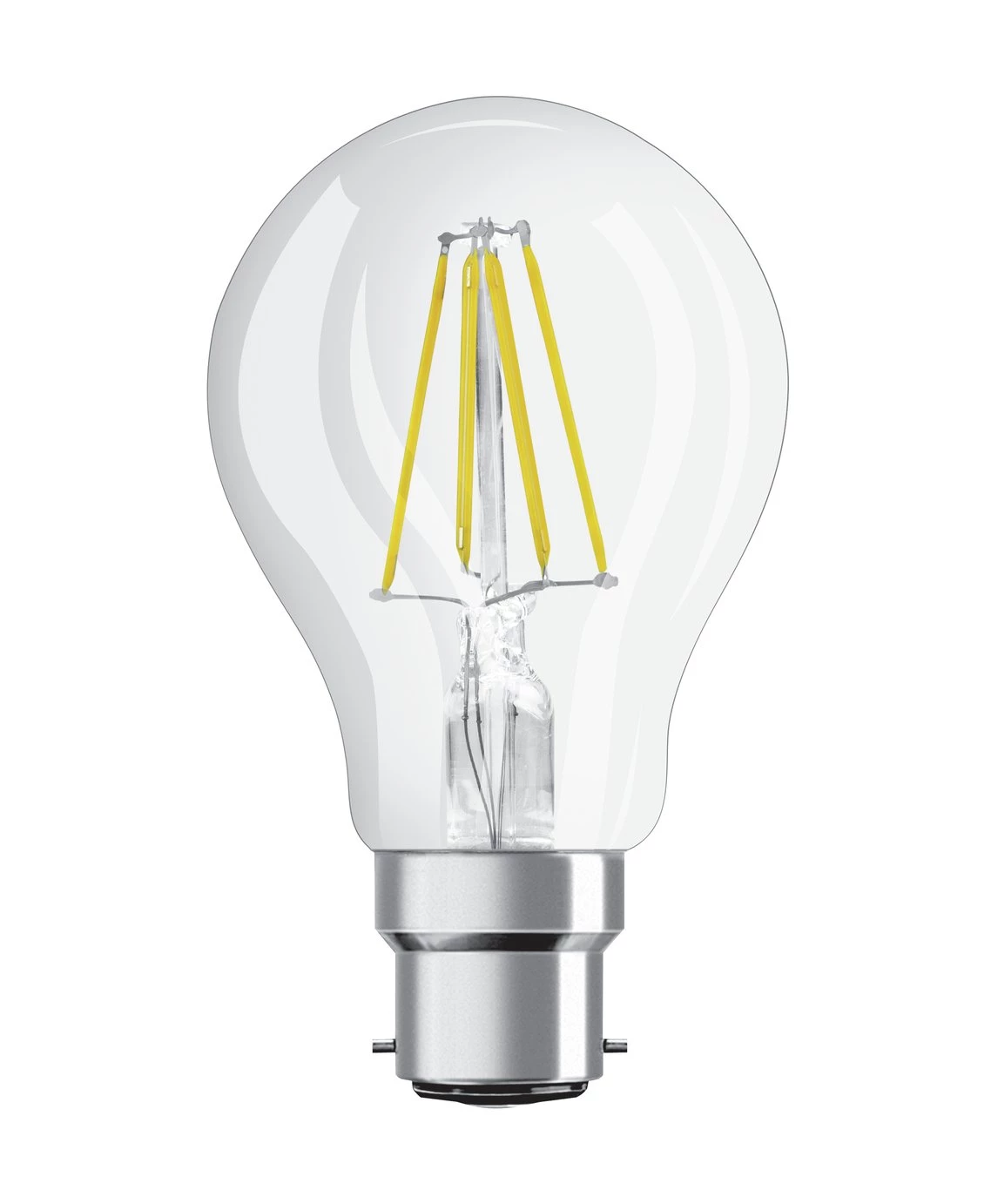 LED lamp, classic bulb shape. Professional LED lamp for line voltage. Not dimmable. Mercury-free lamp. Lifetime: up to 15,000 h. Beam angle: up to 300. Lamp with innovative LED "filament" technology. Design, dimensions, luminous flux comparable to an incandescent or halogen lamp. Very low energy consumption. No UV and near-IR radiation in the light beam. Instant 100 % light, no warm-up time. Areas of application: Domestic applications. General illumination. Outdoor use in outdoor luminaires only (minimum IP65).