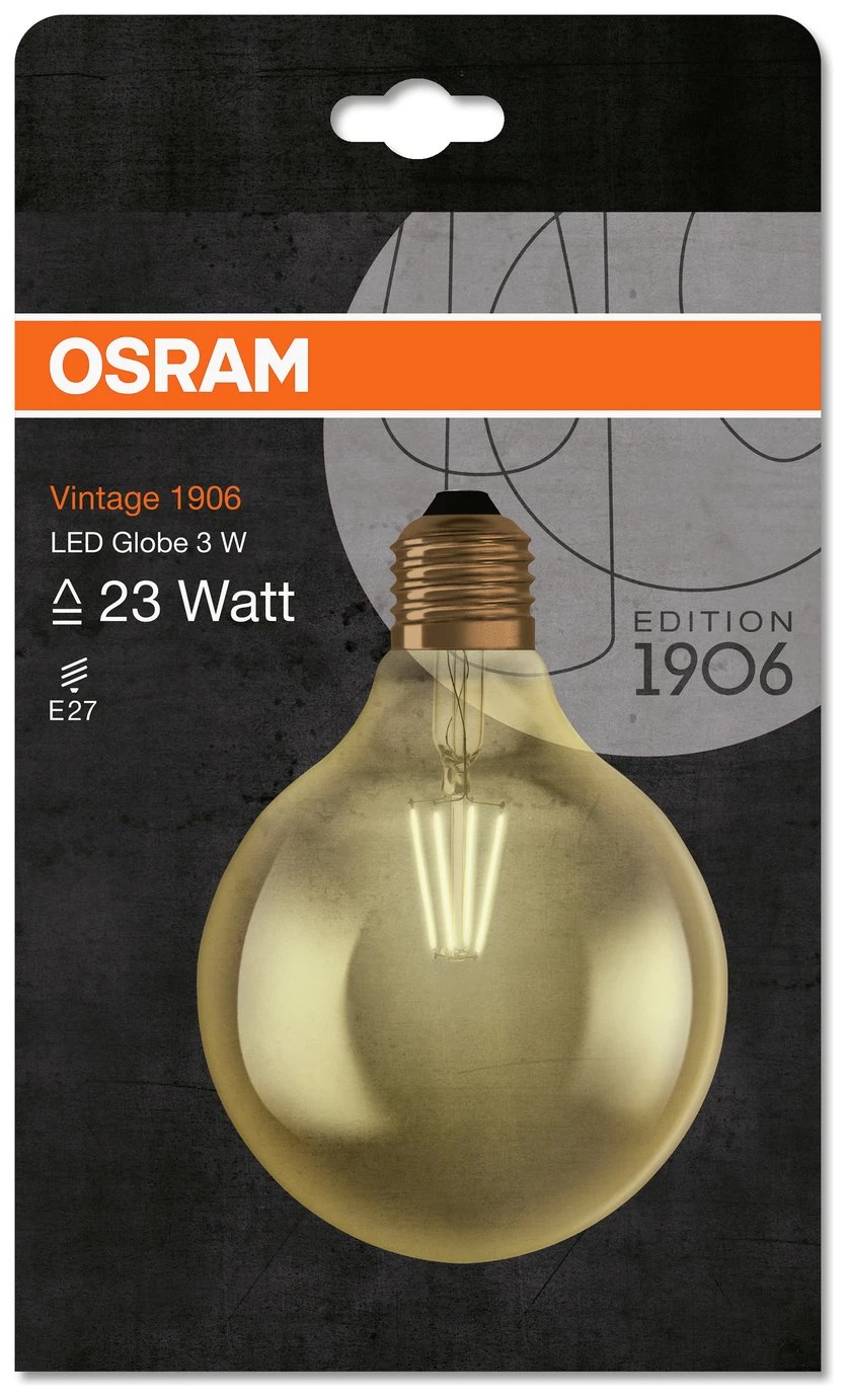 Vintage effect LED filament bulb in retro Globe design with ES E27 fitting. Long lifetime of 15,000hrs or 15 years. Warm white light for comfort and relaxation, ideal for decorative use throughout the home and in the living room. Immediately at full power, no warm-up time.