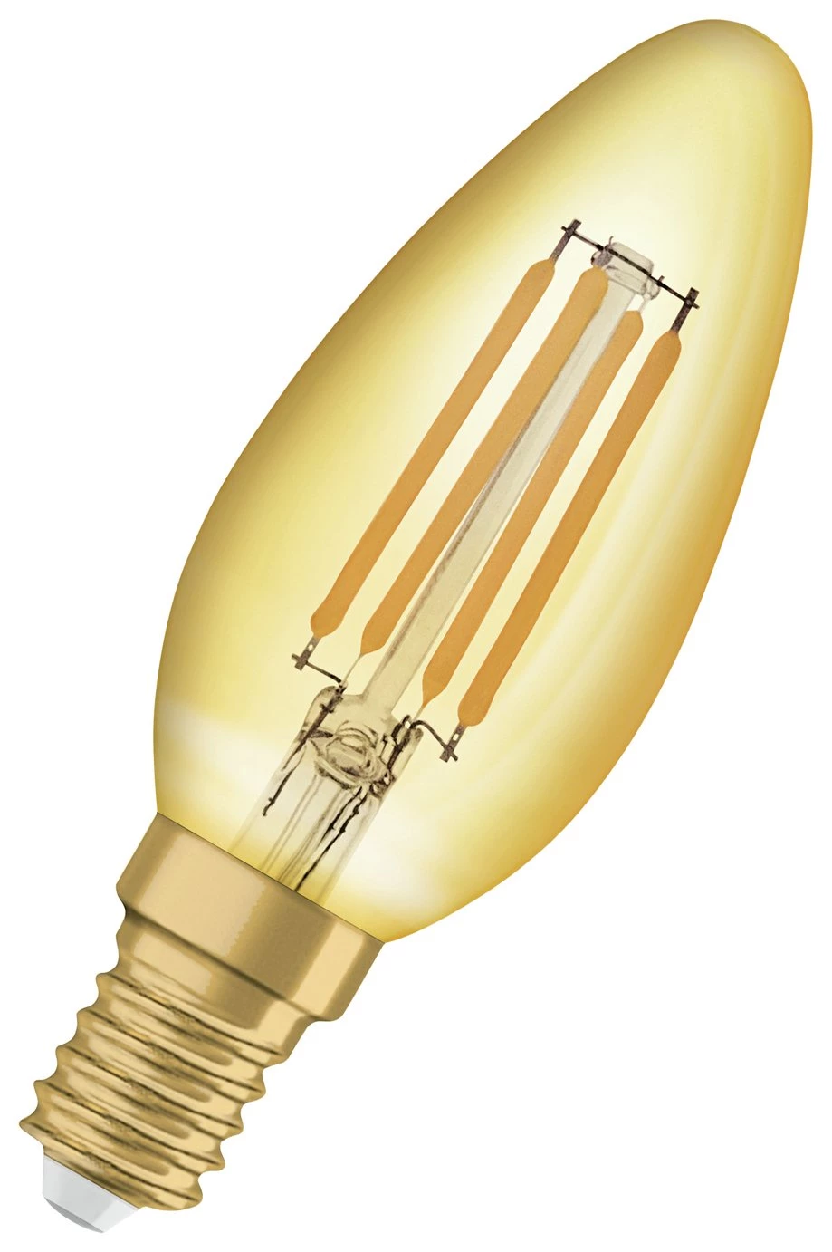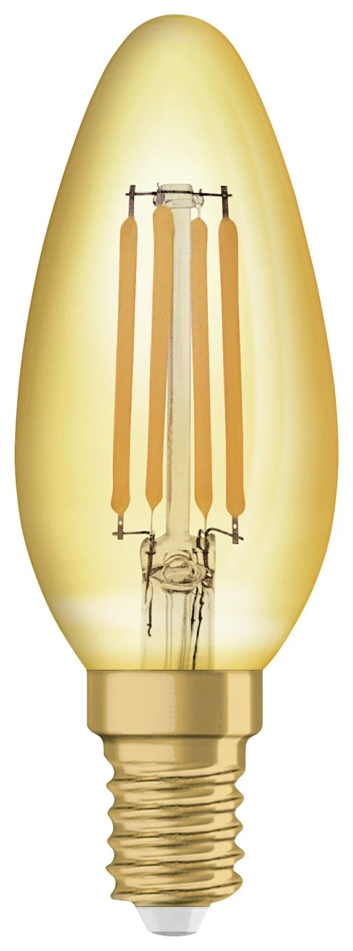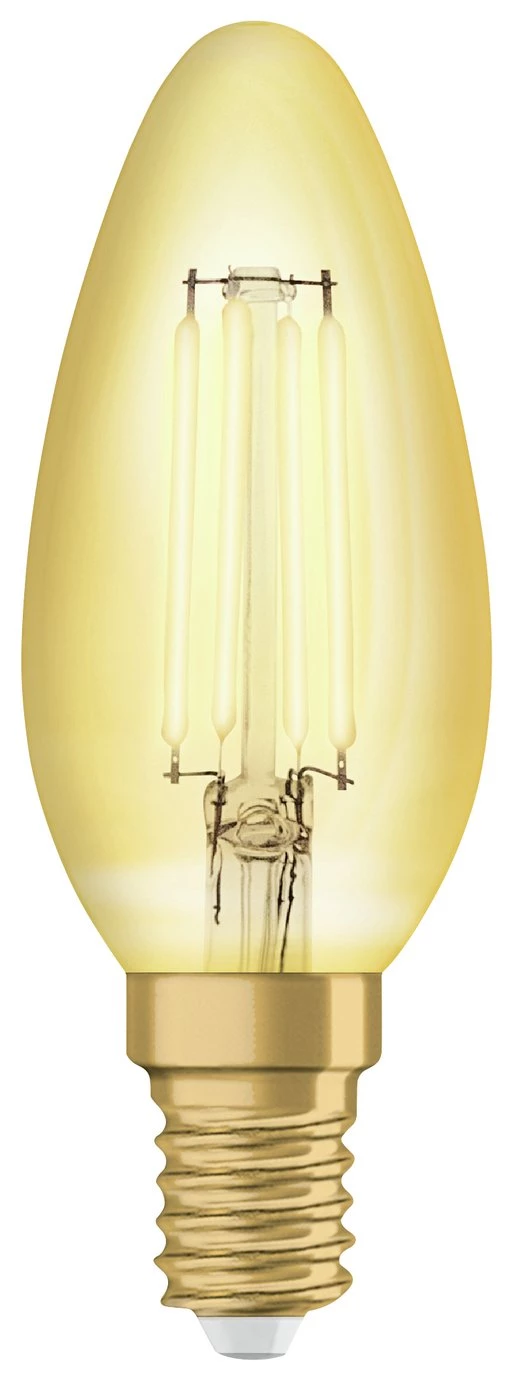 Vintage effect LED filament bulb in retro Candle design with SES E14 fitting. Long lifetime of 15,000hrs or 15 years. Warm white light for comfort and relaxation, ideal for decorative use throughout the home and in the living room. Immediately at full power, no warm-up time.