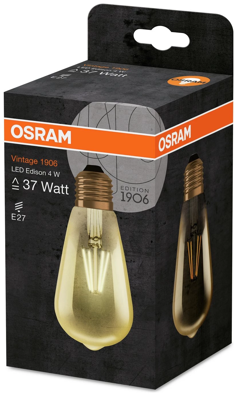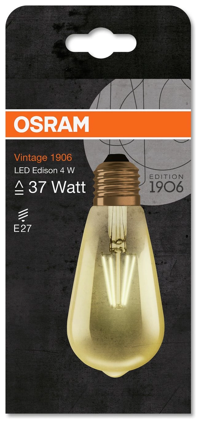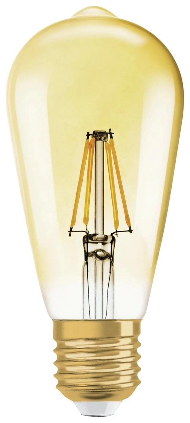Vintage effect LED filament bulb in retro Edison design with ES E27 fitting. Long lifetime of 15,000hrs or 15 years. Warm white light for comfort and relaxation, ideal for decorative use throughout the home and in the living room. Immediately at full power, no warm-up time.
